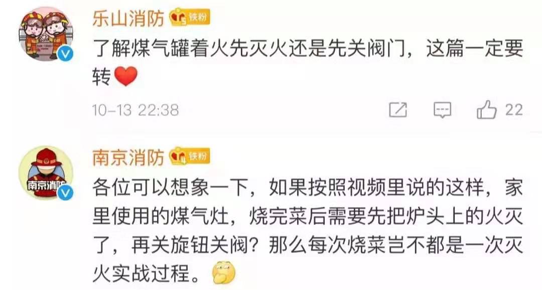 10月13日,@中國消防 在線喊話:請不要被其誤導!