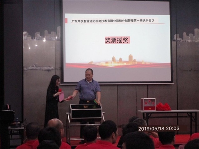 此次會議分為7個環節進行,即:總經理發表重要講話、總經理助理介紹積分制、感恩元老級員工、積分排名情況、員工生日會、才藝表演、獎票搖獎。