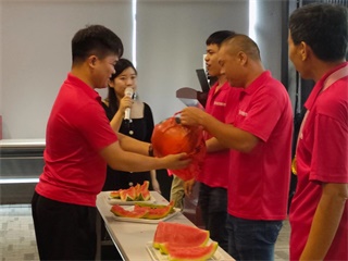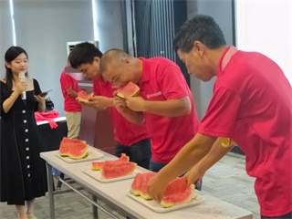 好玩又好吃的吃西瓜比賽登場(chǎng)啦,誰(shuí)最先吃完面前的西瓜即可獲得神秘大獎(jiǎng), 站在C位的實(shí)力派選手魏兵同志,以40秒的時(shí)間獲勝,成功地把神秘大獎(jiǎng)西瓜一枚抱回家啦!