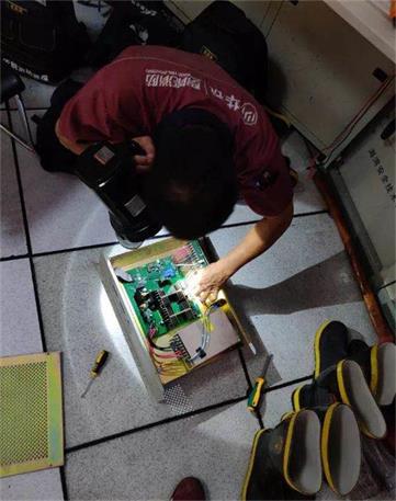 下圖就是我司南峰中心維保項目夜間修復排煙風口以及更換電源主板。南峰中心是一棟辦公樓,維修過程中機器發出的聲音會影響到大家辦公,通常會選擇在辦公人員都下班后,我們的維保人員才會進行維修,有時會維修到第二天的凌晨。